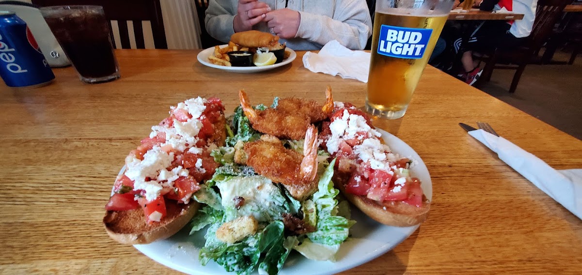 Bruschetta with Caesar Salad and Breaded Shrimp
